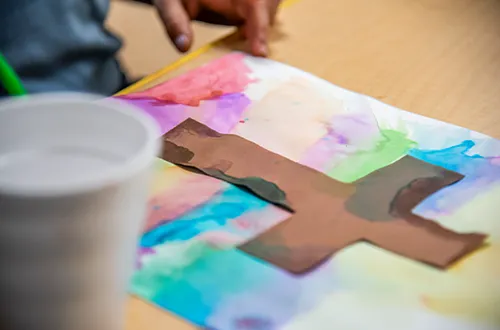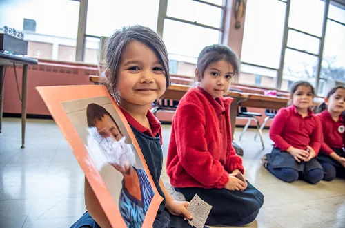 Students are surrounded by elements of Catholic identity, including custom murals and other Catholic art and relics in the halls and classrooms. These provide visual reminders of the faith and help guide moments of intentional prayer throughout the day.